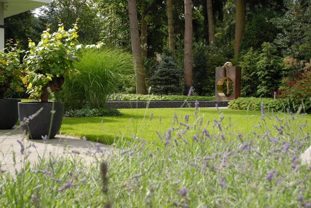 Een tuin op een open plek in het bos. Dat romantische beeld stond de eigenaar van een Blaricumse villa voor ogen. De bostuin van bijna 3000 m2 werd aangelegd door Van Raaijen Hoveniers. Dit Almeerse familiebedrijf voelt zich thuis op zowel zand- als kleigrond, en is gespecialiseerd in de aanleg van de grotere tuin.