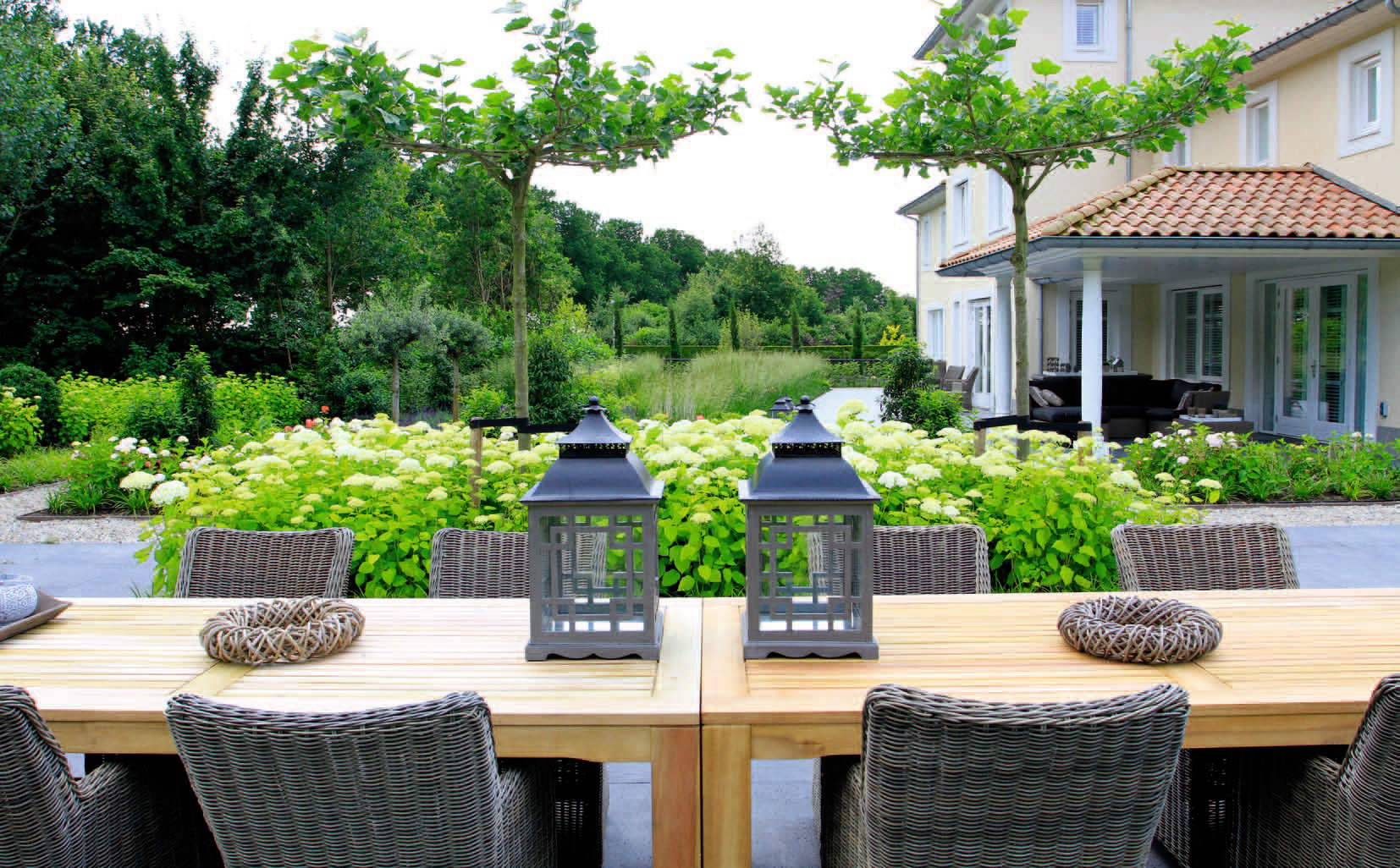 Klein Overgooi is een dorpje op zich. Een dorp met de genoegens van de grote stad binnen handbereik. Albertine en Romano wonen nu een jaar in hun prachtige huis en willen nooit meer weg. De tuin van 3000 m2 was voor deze buitenmensen een extra motivatie om het huis te kopen. Hun wens? Een ‘knusse’ tuin! Maar hoe maak je een tuin van 70 bij 42 meter knus? Laat dat maar aan Van Raaijen Hoveniers over.