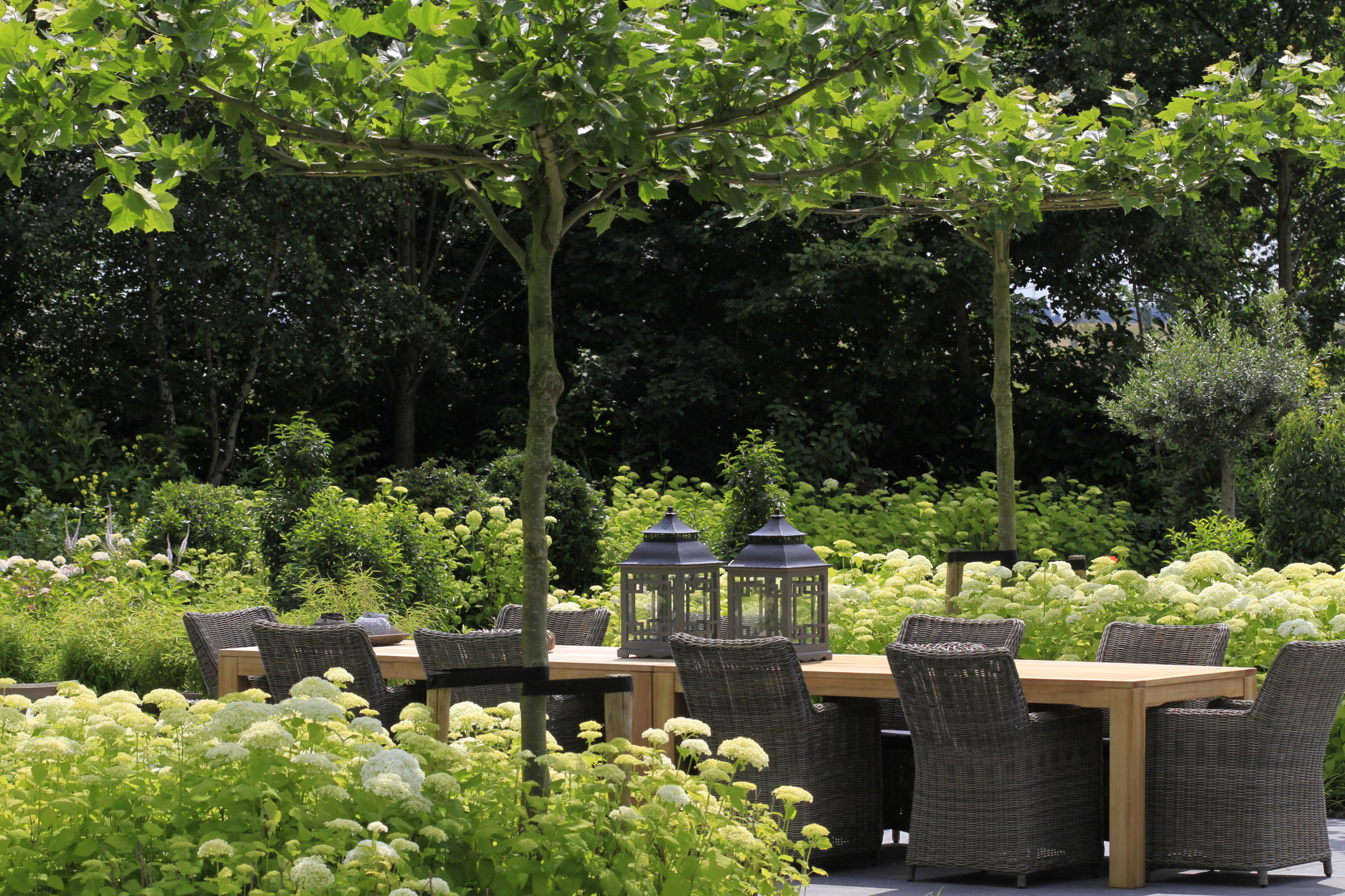 Klein Overgooi is een dorpje op zich. Een dorp met de genoegens van de grote stad binnen handbereik. Albertine en Romano wonen nu een jaar in hun prachtige huis en willen nooit meer weg. De tuin van 3000 m2 was voor deze buitenmensen een extra motivatie om het huis te kopen. Hun wens? Een ‘knusse’ tuin! Maar hoe maak je een tuin van 70 bij 42 meter knus? Laat dat maar aan Van Raaijen Hoveniers over.