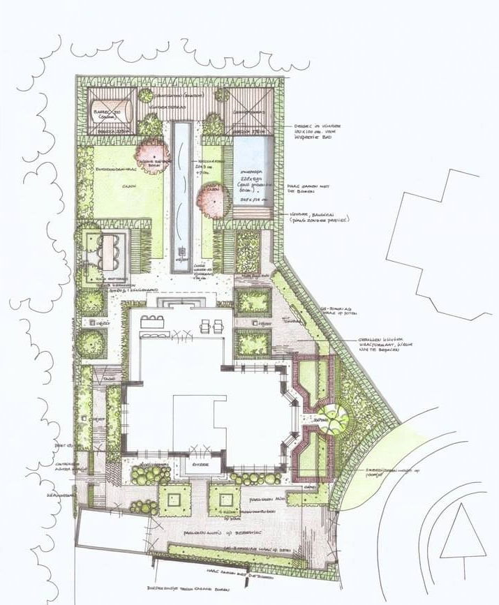De bewoners van deze villa komen bij ons terecht na een aanbeveling van tuinfotograaf en groenauteur Modeste Herwig. Op dat moment is op locatie alleen het bouwkavel en de prachtige, bosrijke omgeving te zien. Dus vormen foto’s en impressies voor onze tuinontwerpster de voornaamste inspiratiebron.