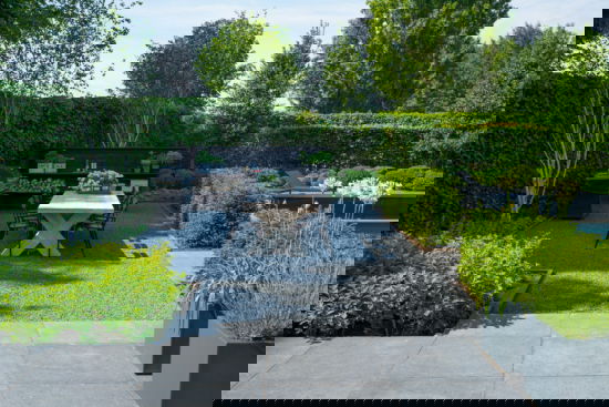 Kloppend hart van de veelzijdige familietuin is meestal het grootste terras. Hier is ruimte voor een grote tafel, omgeven met sfeervol groen. Dit stralende middelpunt vormt de plek waar gezellig samen gegeten en gedronken wordt. Voor wie in alle rust een boek wil lezen, is er verderop een besloten tuinkamer. Heerlijk genieten van een drankje of een boek terwijl de kinderen zorgeloos plezier maken. In de familietuin kent gezelligheid geen (leef)tijd.